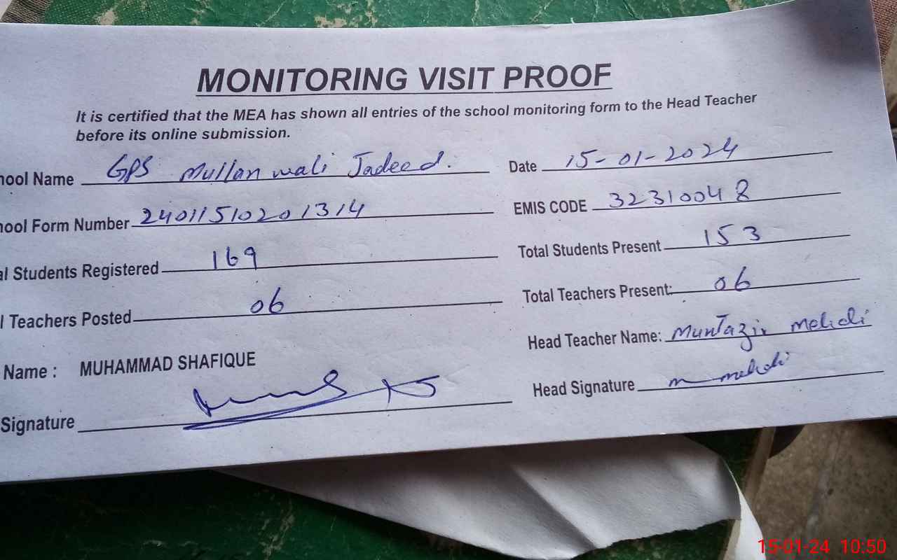 | EMIS Code: 32310048 | Name of School: GPS MULLAN WALI JADEED | |||