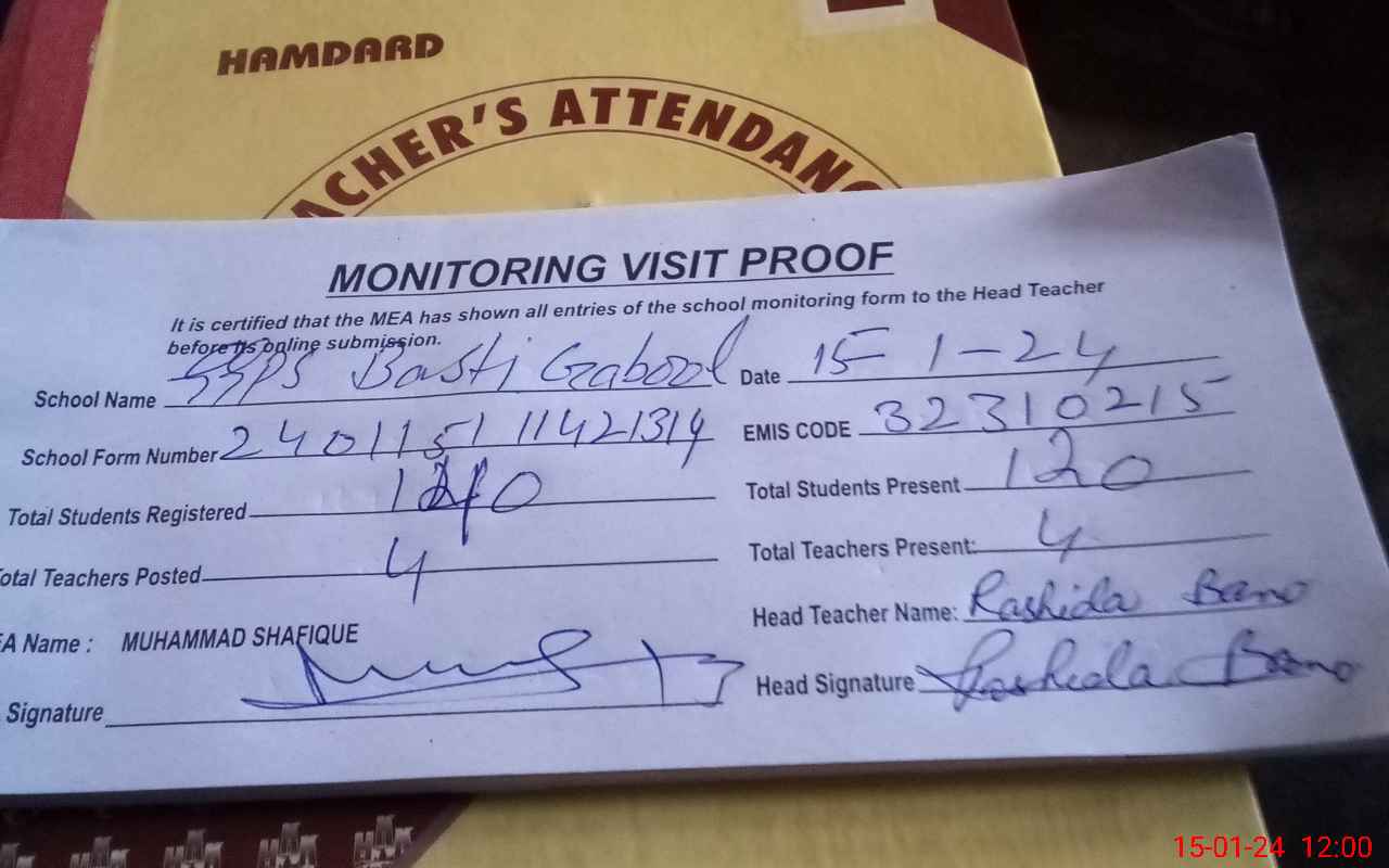 | Attendance Register | Head Teacher | MEA with School | Visit Proof |