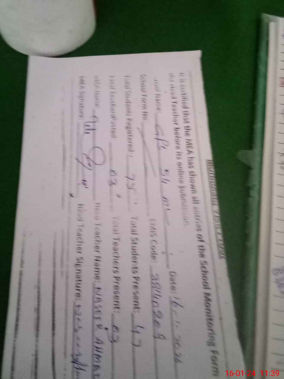 | Name: Na**** Ah**** Designation: (School Headmaster's/Headmistress's) PST Phone/Cell Number: 03**** |