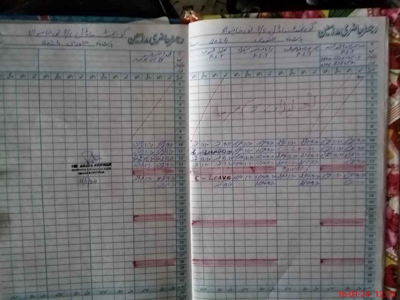 | CNIC | Full Name | Designation | R/C | Absence During Last Calender Month |