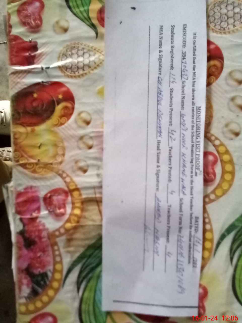 | Attendance Register | Head Teacher | MEA with School | Visit Proof |