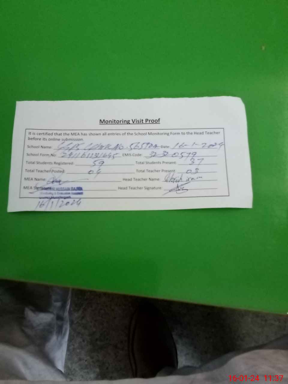| EMIS Code: 32320579 | Name of School: GGPS CHAK NO. 565/TDA | |||