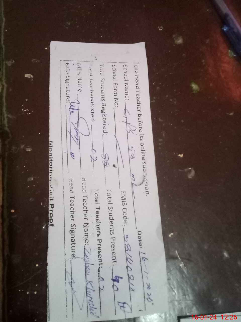 | EMIS Code: 38140210 | Name of School: GPS CHAK NO 53 ML | |||