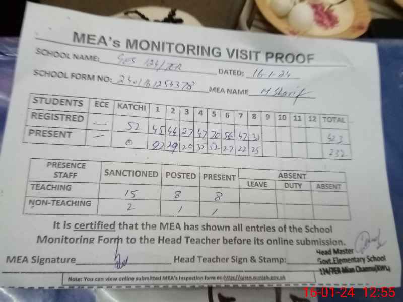| Certified that this School was Inspected by the Undersigned MEA/DMO Today and the Information Stated Above is as Per Record. | |||||