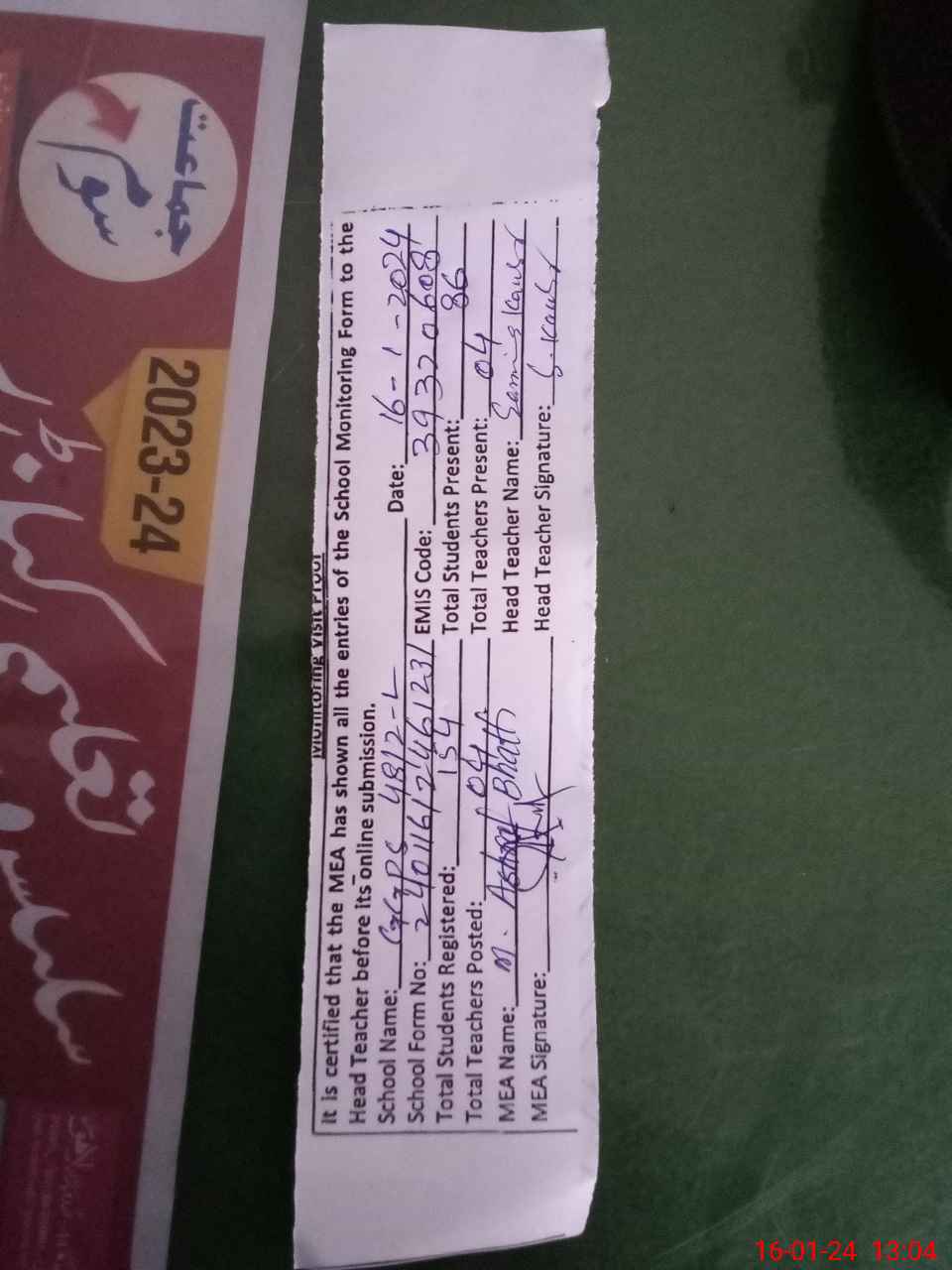 | Certified that this School was Inspected by the Undersigned MEA/DMO Today and the Information Stated Above is as Per Record. | |||||