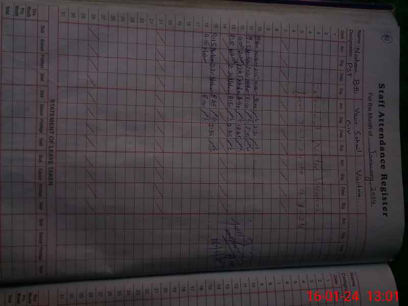 | CNIC | Full Name | Designation | R/C | Absence During Last Calender Month |