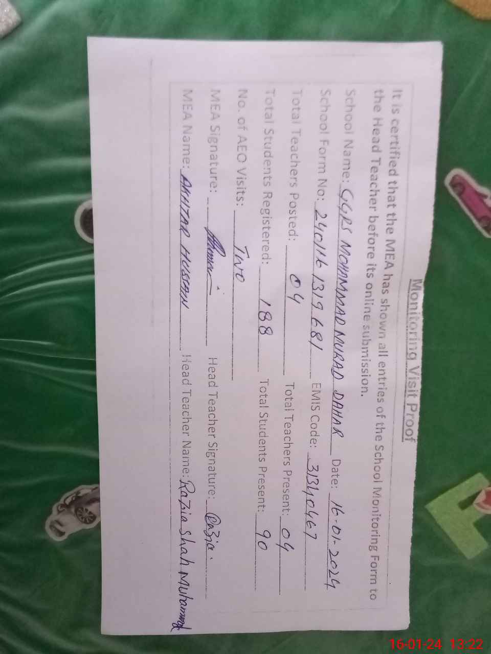 | EMIS Code: 31340467 | Name of School: GGPS MUHAMMAD MURAD DAHAR | |||