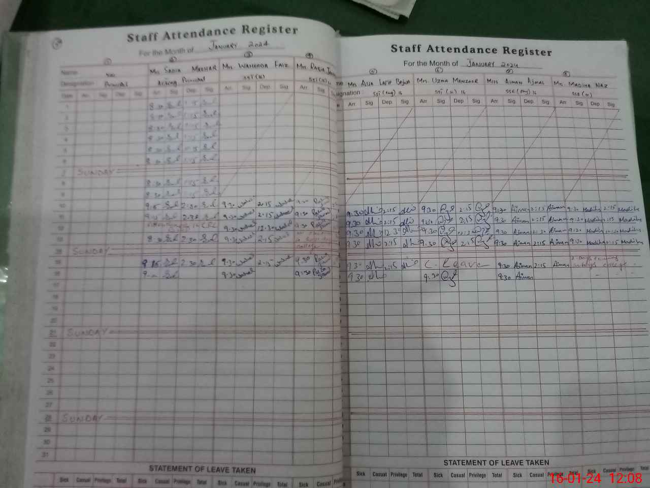 | CNIC | Full Name | Designation | R/C | Absence During Last Calender Month |