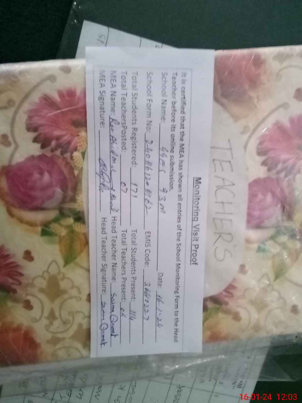 | EMIS Code: 36610227 | Name of School: GGHS 93/M LODRAAN | |||