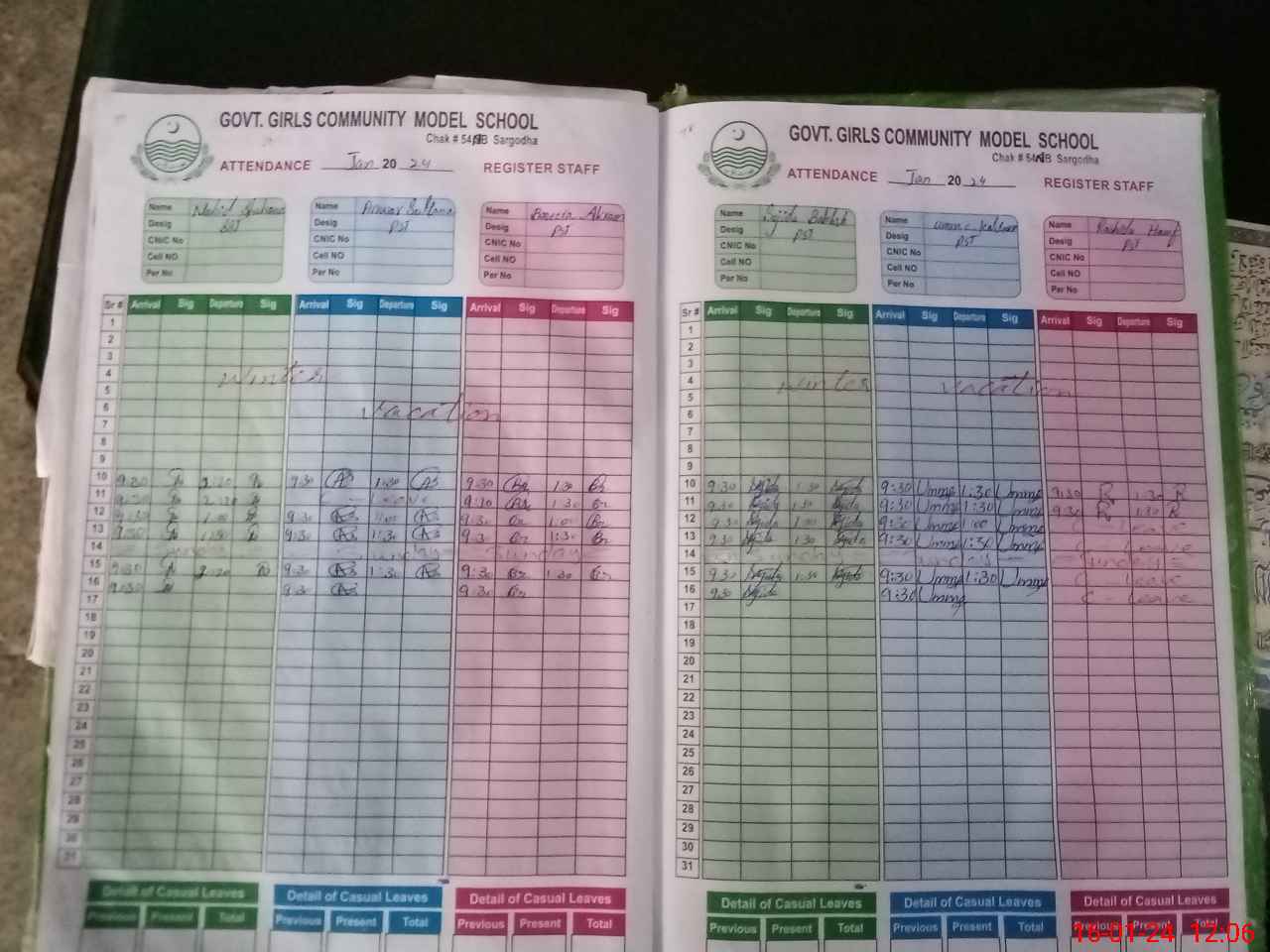 | CNIC | Full Name | Designation | R/C | Absence During Last Calender Month |