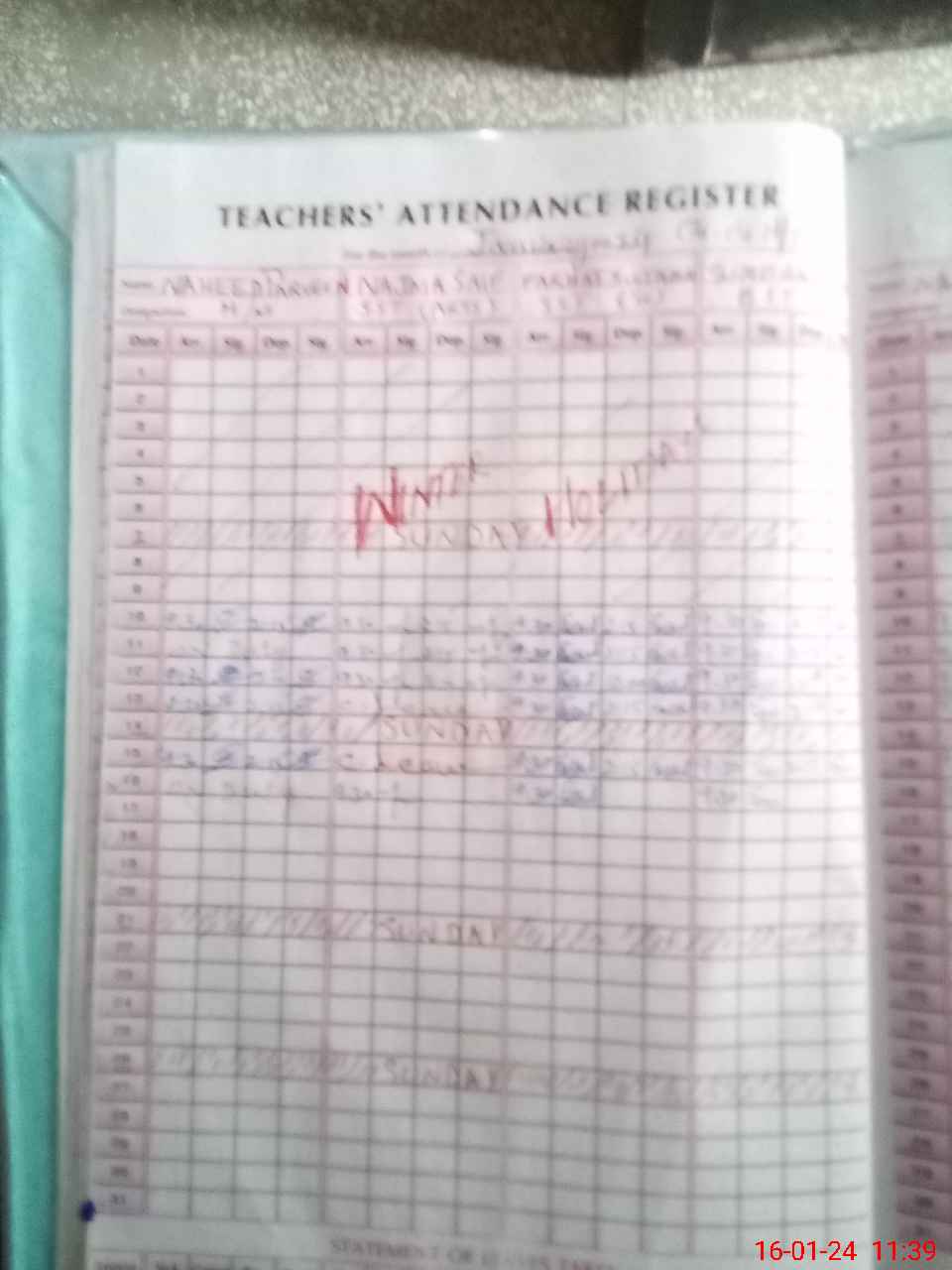 | CNIC | Full Name | Designation | R/C | Absence During Last Calender Month |