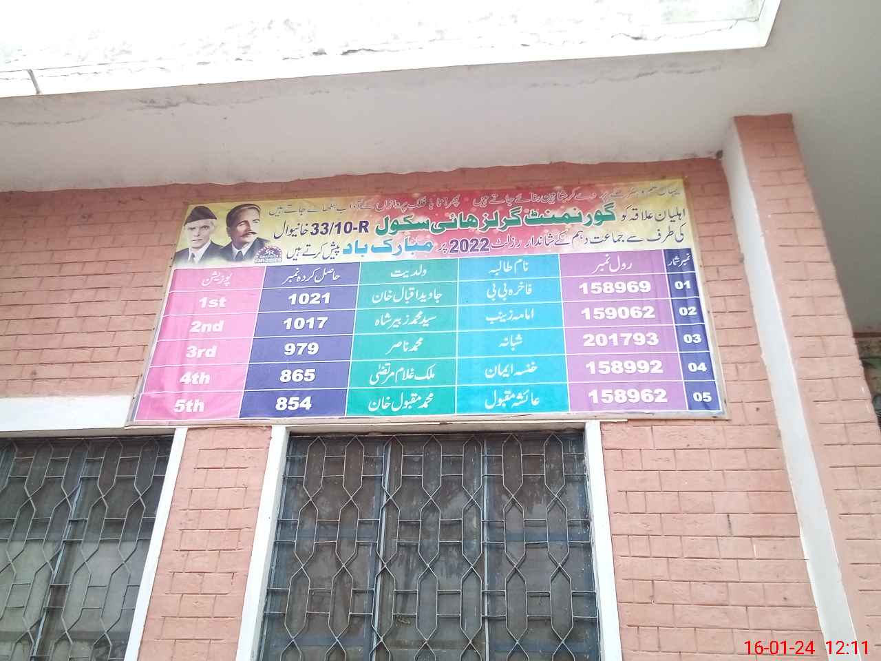 | EMIS Code: 36420120 | Name of School: GGHS 33/10-R, KACHA KHUH | |||