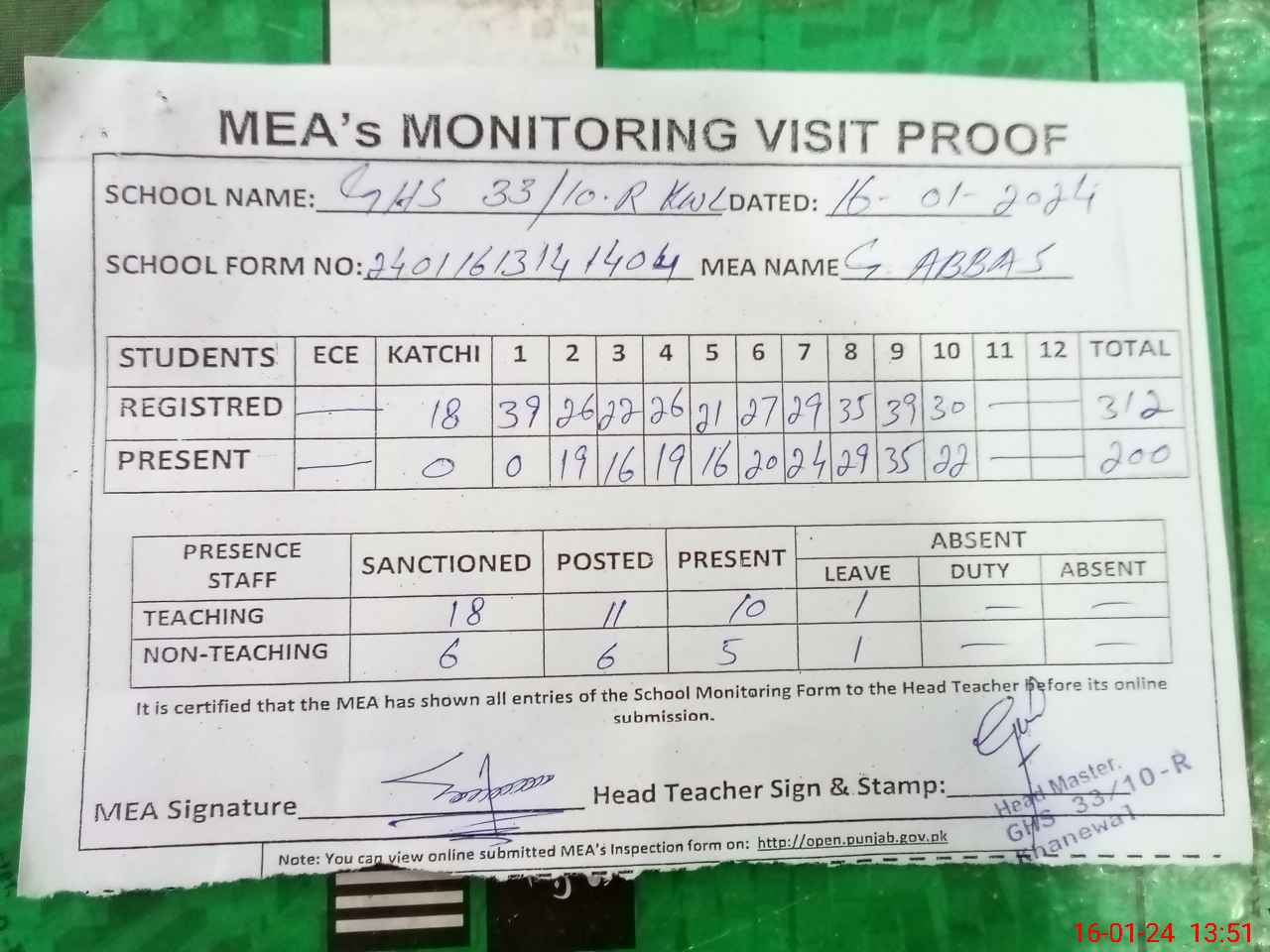 | EMIS Code: 36420026 | Name of School: GHS 33/10-R, KACHA KHUH | |||