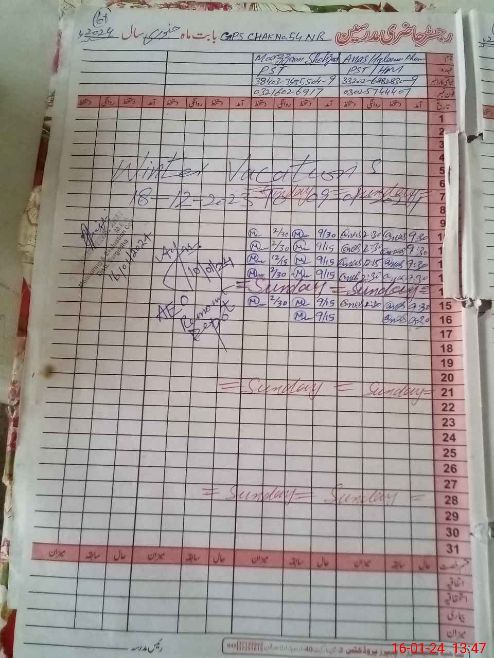 | Name: AN**** HA**** KH**** Designation: (School Headmaster's/Headmistress's) PST Phone/Cell Number: 03**** |