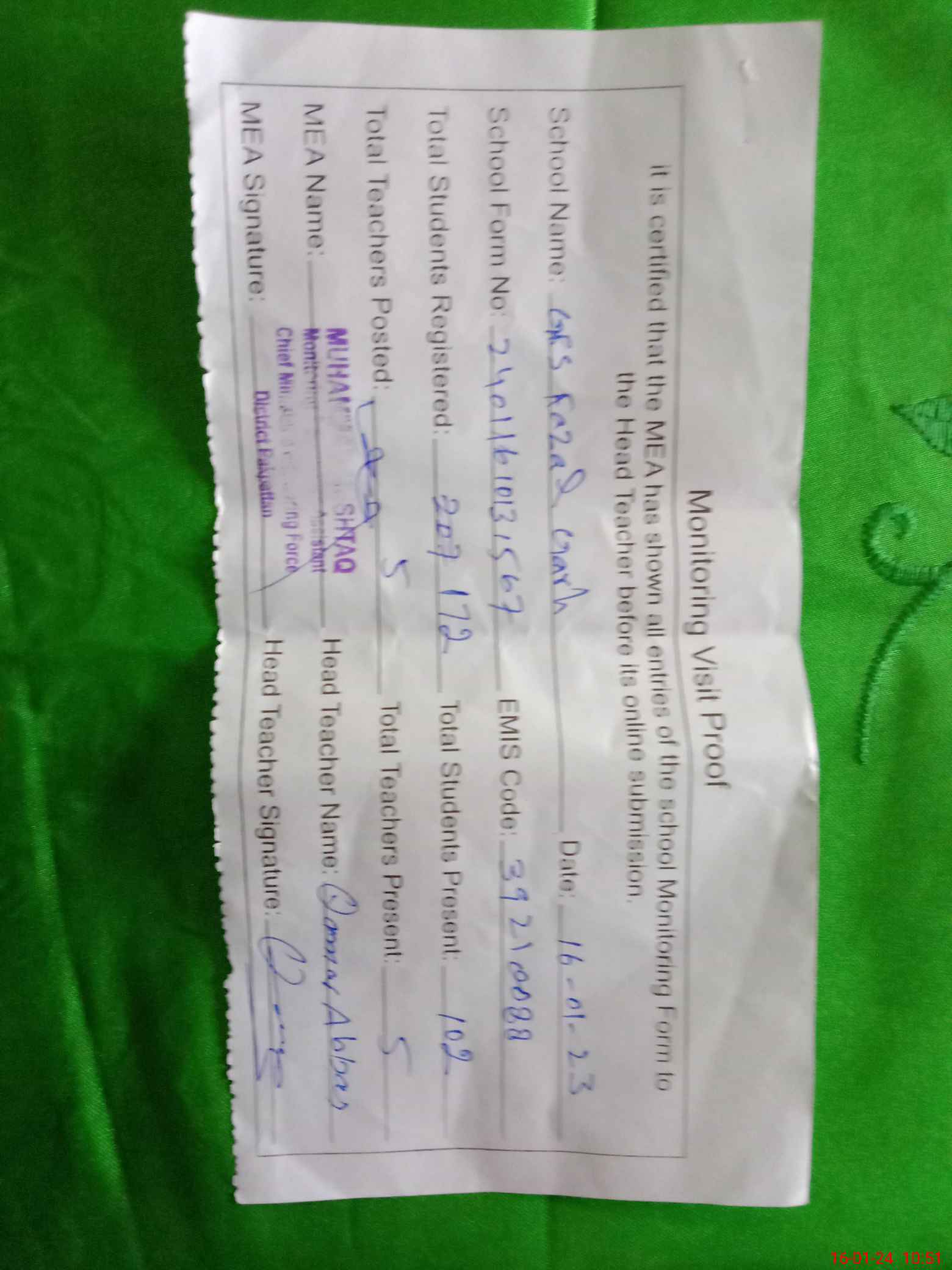 | EMIS Code: 39210088 | Name of School: GES FAZAL GARH P.O BOYLE GANJ | |||