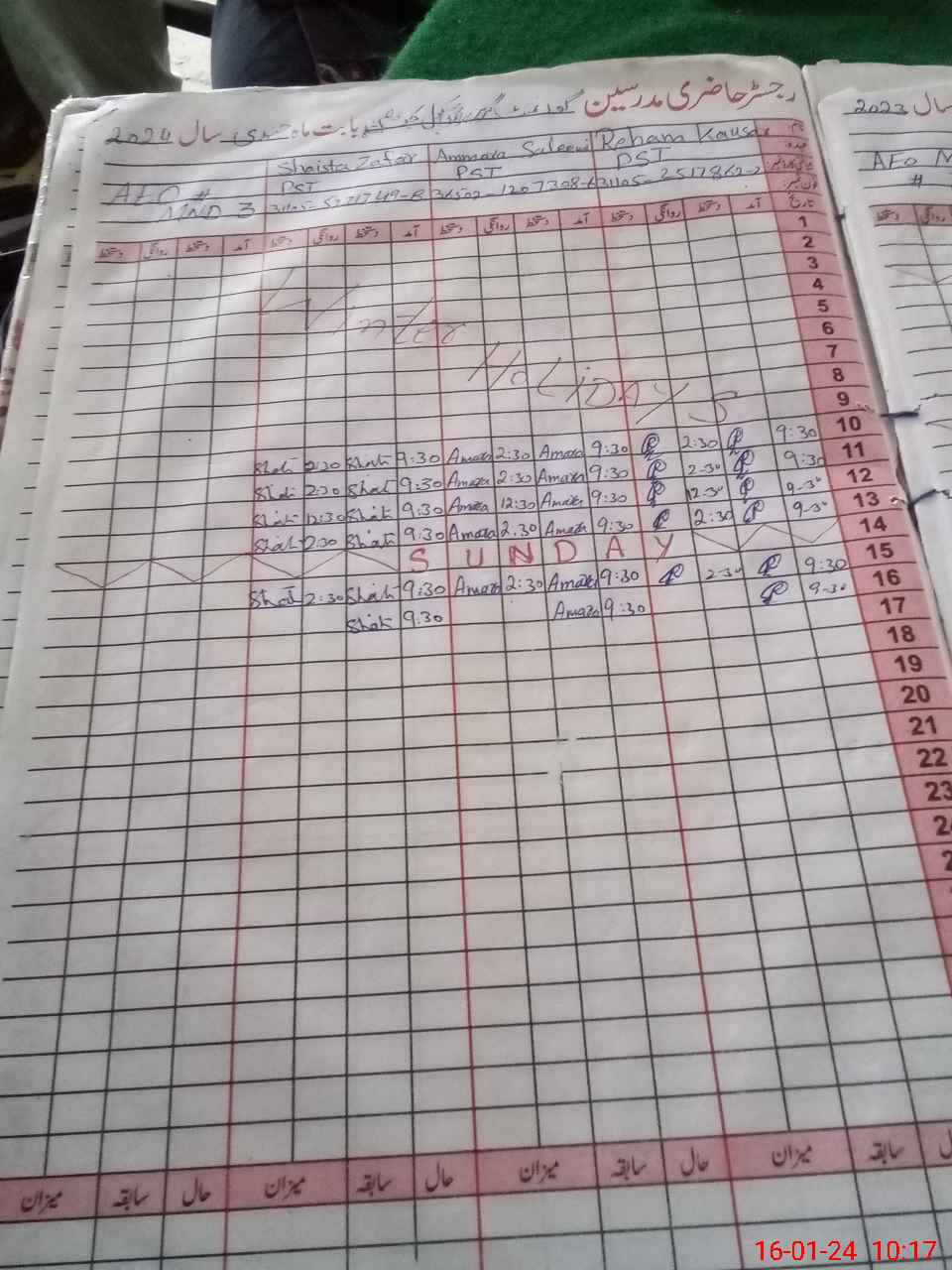 | CNIC | Full Name | Designation | R/C | Absence during last cal. month |