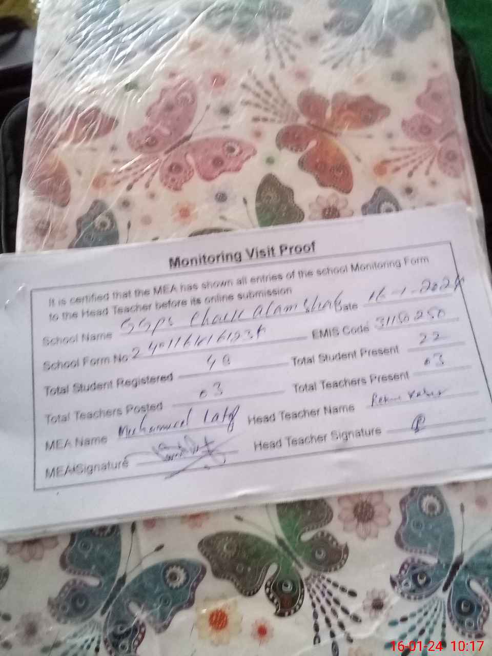 | Attendance Register | Head Teacher | MEA with School | Visit Proof |