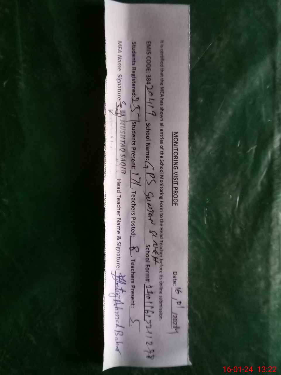 | EMIS Code: 38420419 | Name of School: GPS DERA SUNJAN SINGH | |||