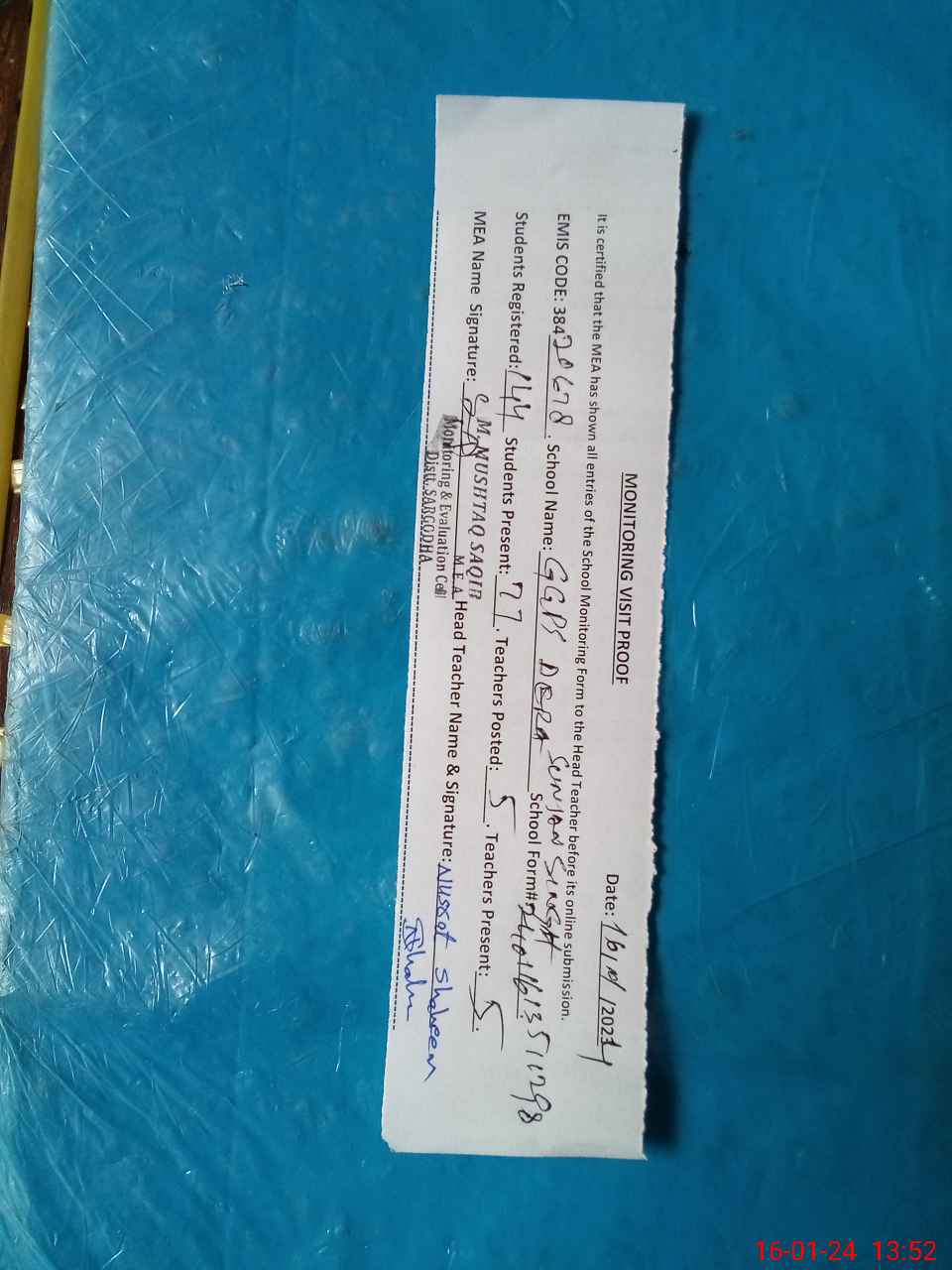 | EMIS Code: 38420678 | Name of School: GGPS DERA SUNJAN SINGH | |||