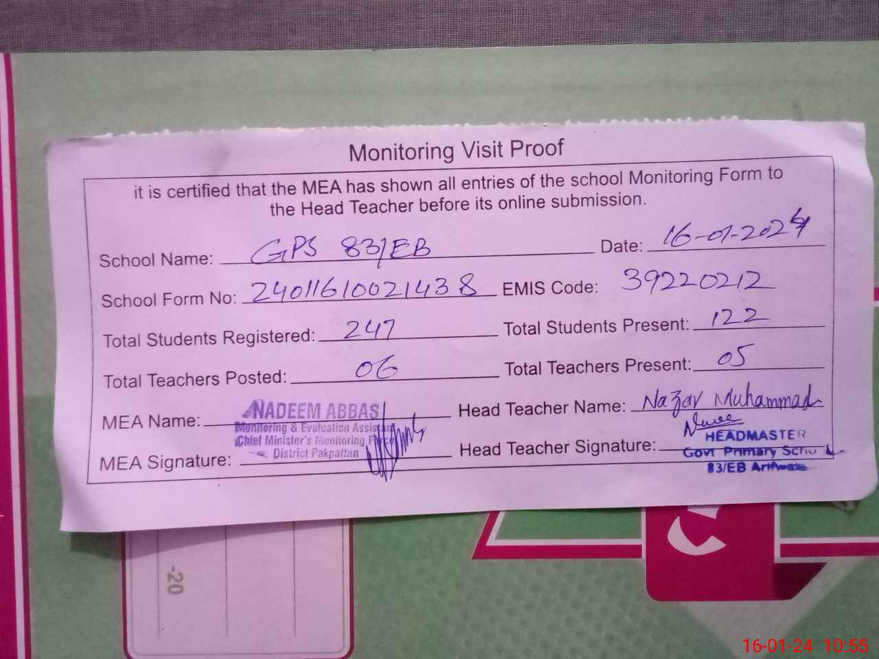 | EMIS Code: 39220212 | Name of School: GPS 83 EB | |||