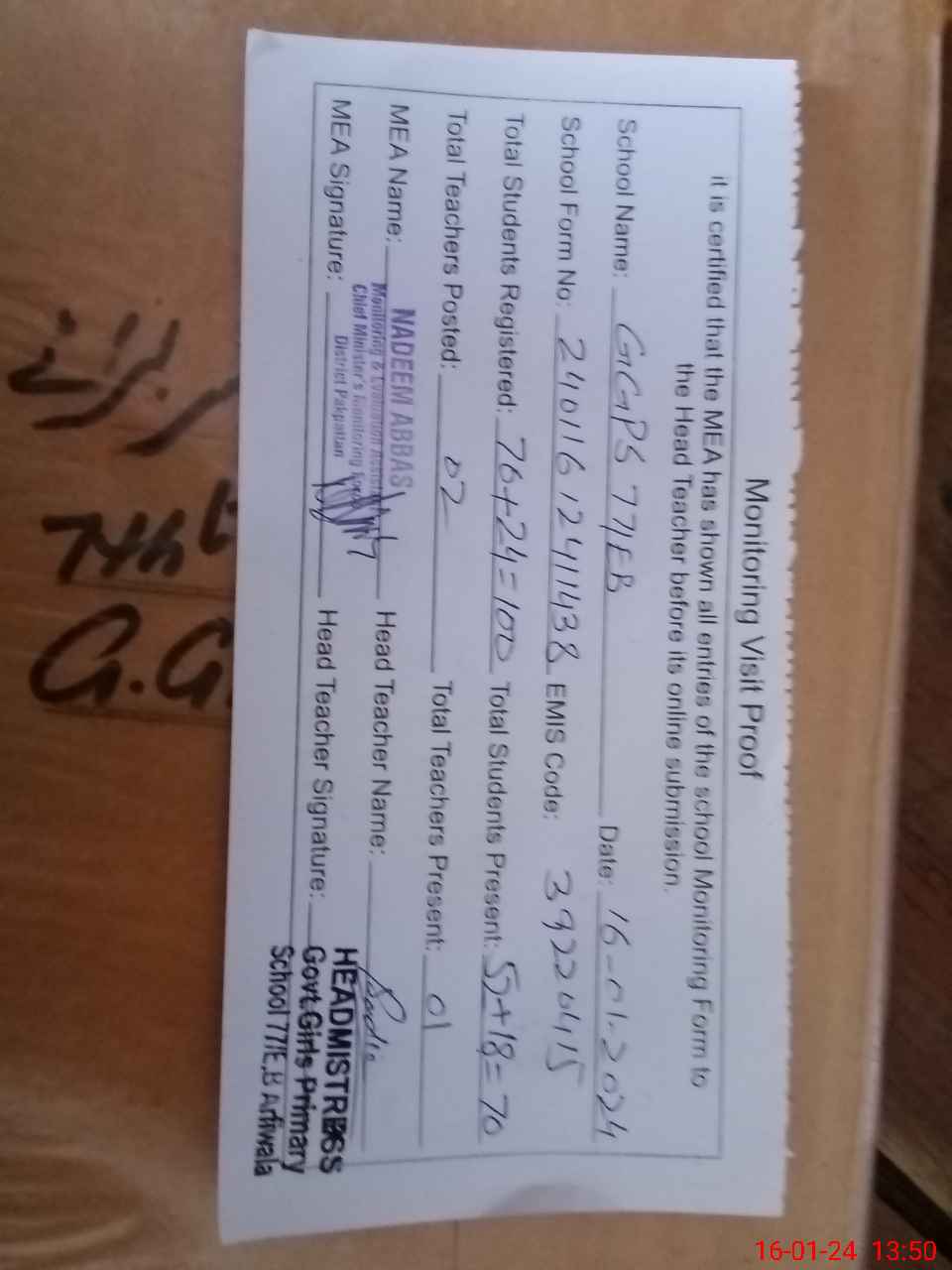 | EMIS Code: 39220415 | Name of School: GGPS 77 EB ARIFWALA | |||
