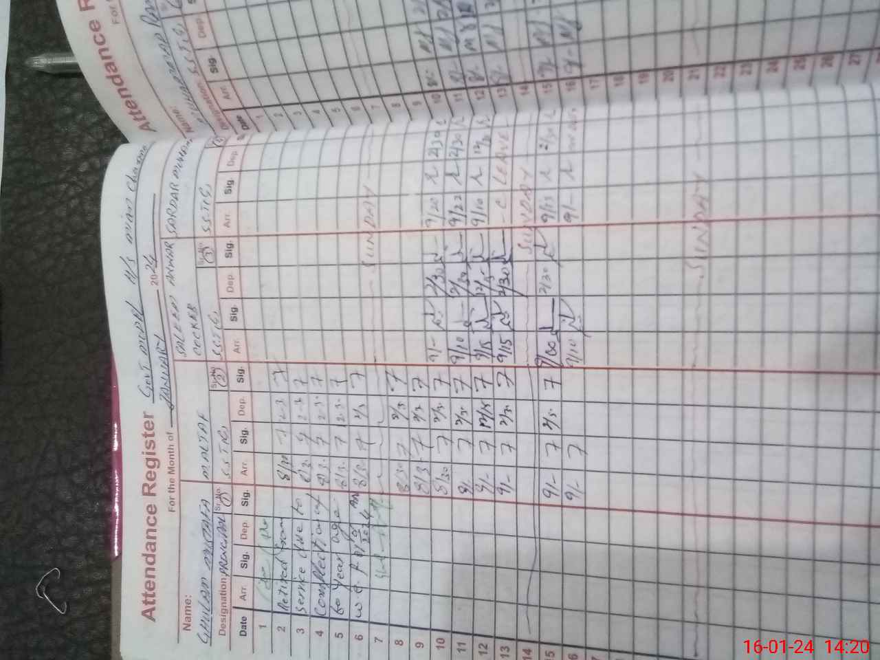 | CNIC | Full Name | Designation | R/C | Absence During Last Calender Month |
