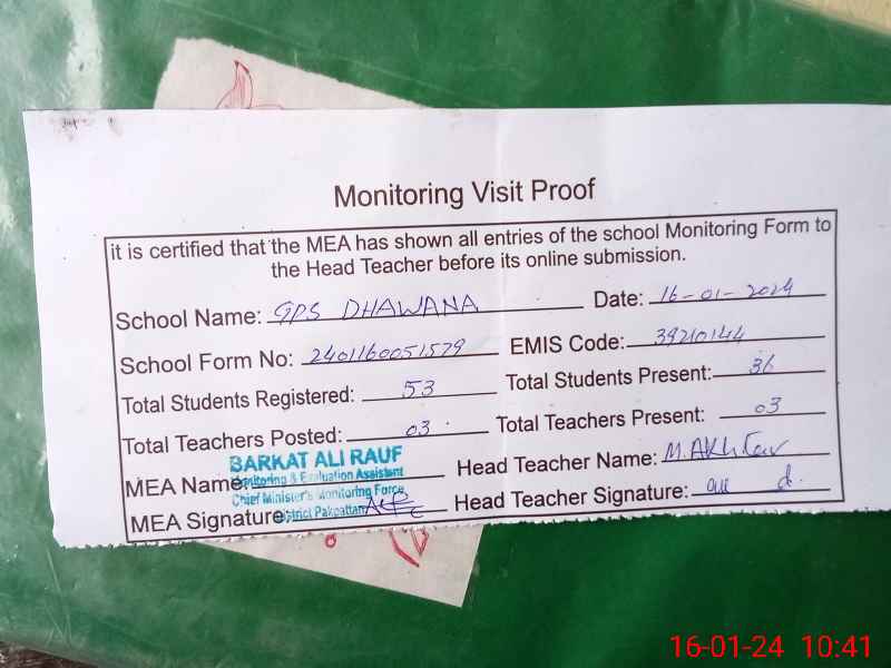 | EMIS Code: 39210144 | Name of School: GPS DHAWANA | |||