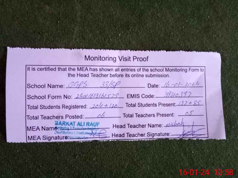 | EMIS Code: 39210397 | Name of School: GGPS 33 SP | |||