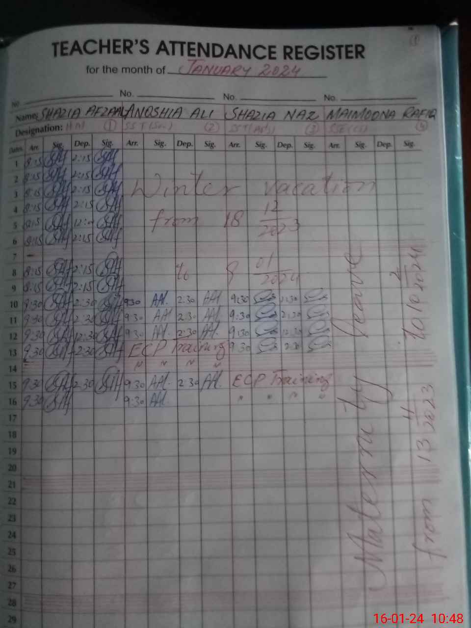 | Leave | Duty | Absent | Maternity | Medical | Ex- Pak |