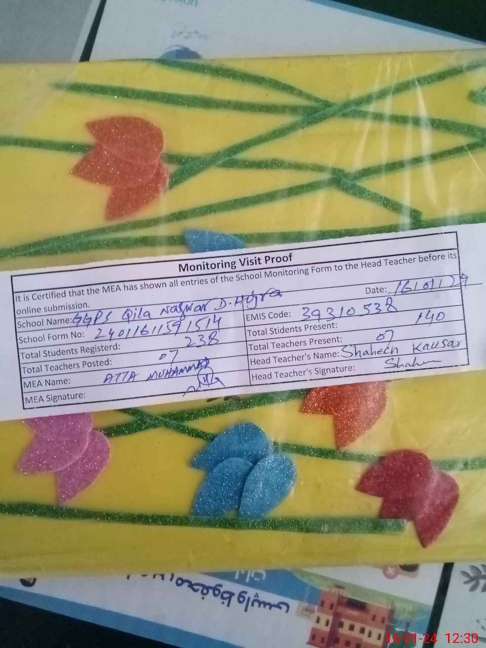 | Attendance Register | Head Teacher | MEA with School | Visit Proof |