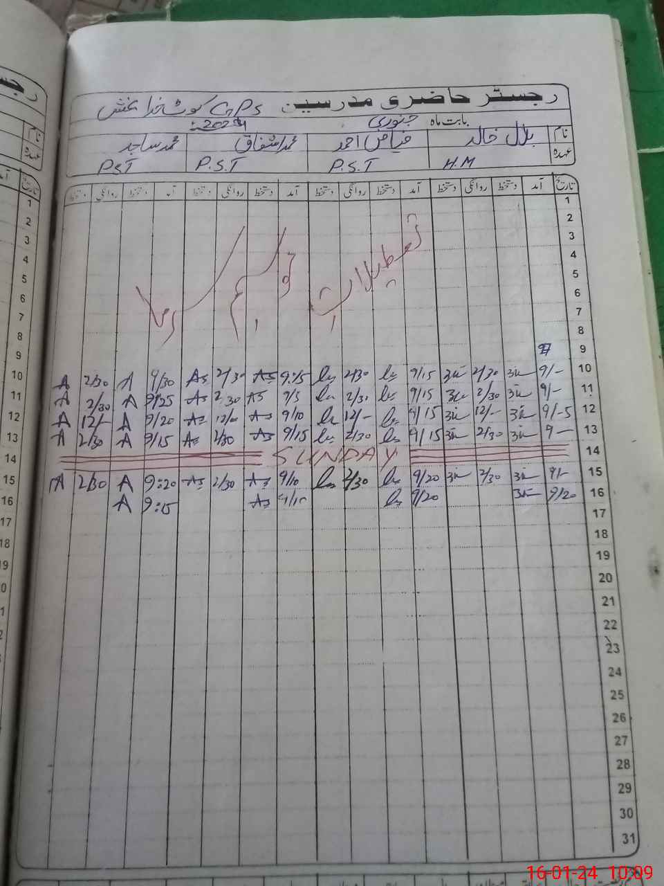 | CNIC | Full Name | Designation | R/C | Absence During Last Calender Month |