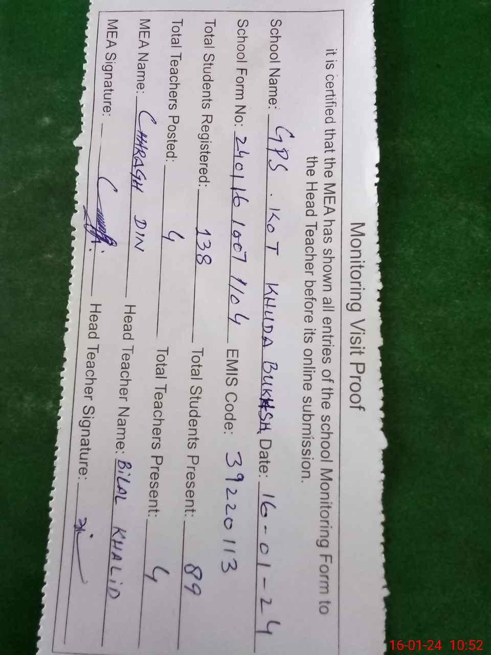 | EMIS Code: 39220113 | Name of School: GPS KOT KHUDA BUKHSH | |||