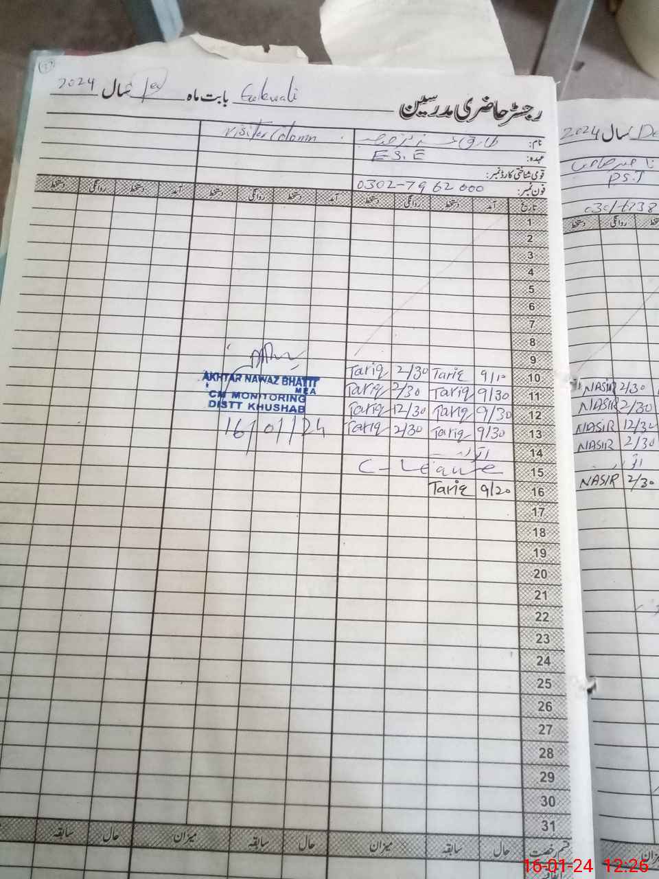 | CNIC | Full Name | Designation | R/C | Absence During Last Calender Month |