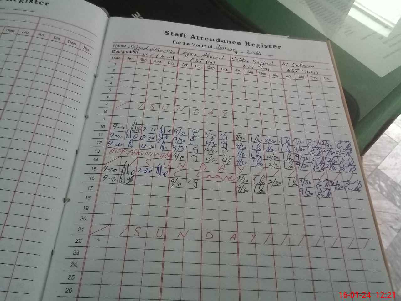 | CNIC | Full Name | Designation | R/C | Absence During Last Calender Month |