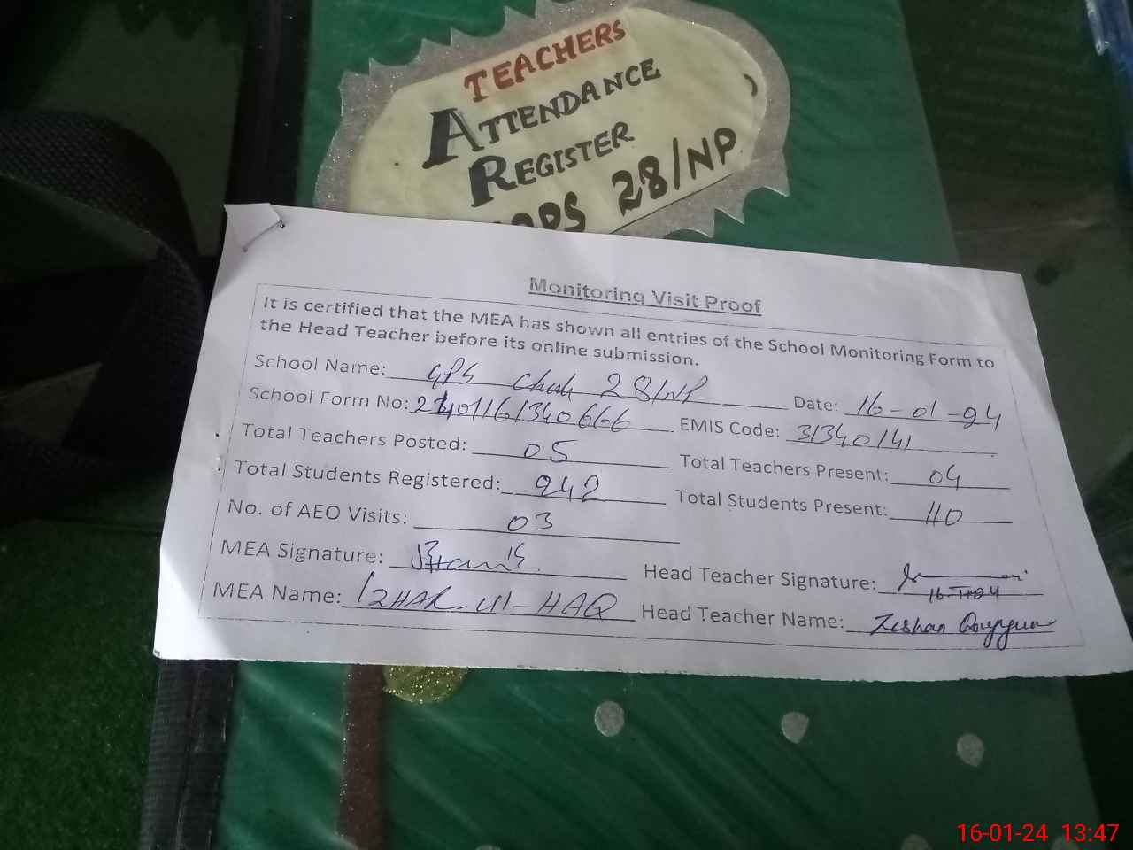 | EMIS Code: 31340141 | Name of School: GPS CHAK NO 28/NP | |||