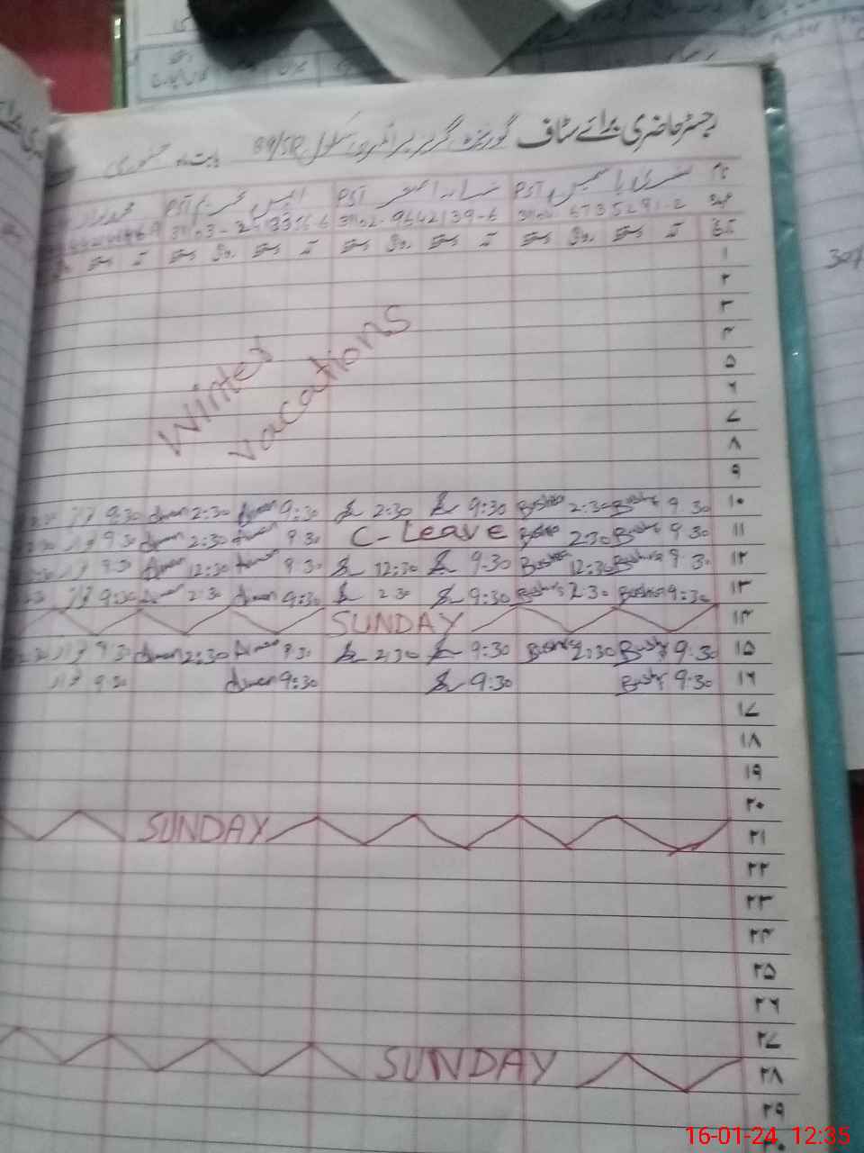 | CNIC | Full Name | Designation | R/C | Absence During Last Calender Month |