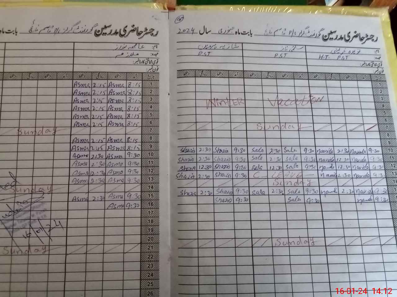 | CNIC | Full Name | Designation | R/C | Absence During Last Calender Month |