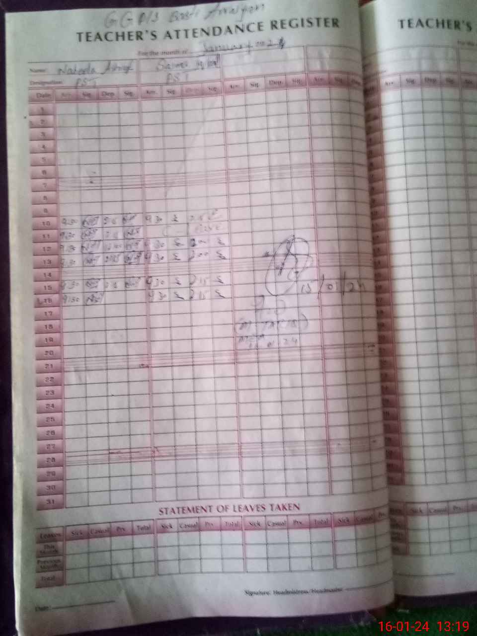 | Leave | Duty | Absent | Maternity | Medical | Ex- Pak |