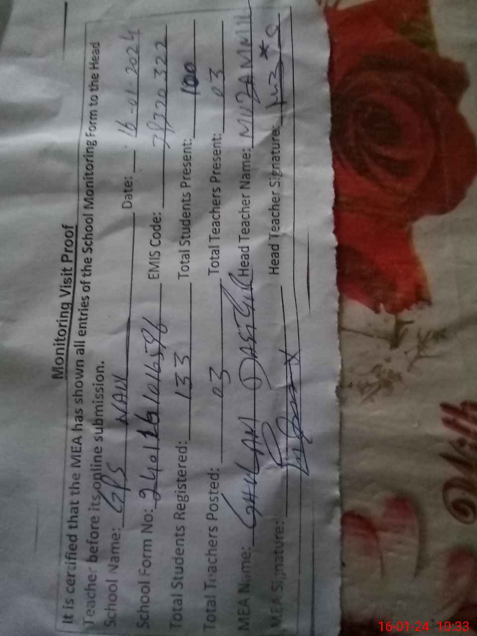 | EMIS Code: 39320322 | Name of School: GPS NAUL | |||