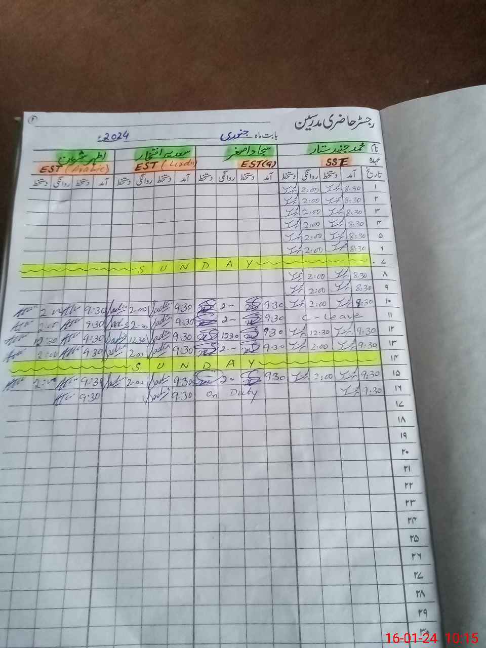| CNIC | Full Name | Designation | R/C | Absence During Last Calender Month |