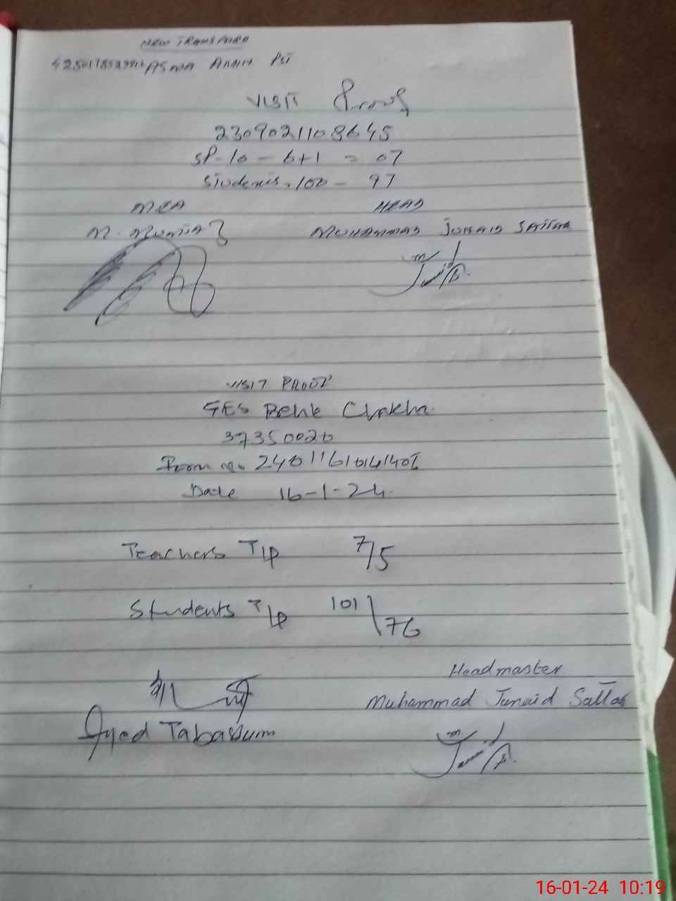 | Name: MU**** SA**** Designation: (School Headmaster's/Headmistress's) SSE Phone/Cell Number: 03**** |