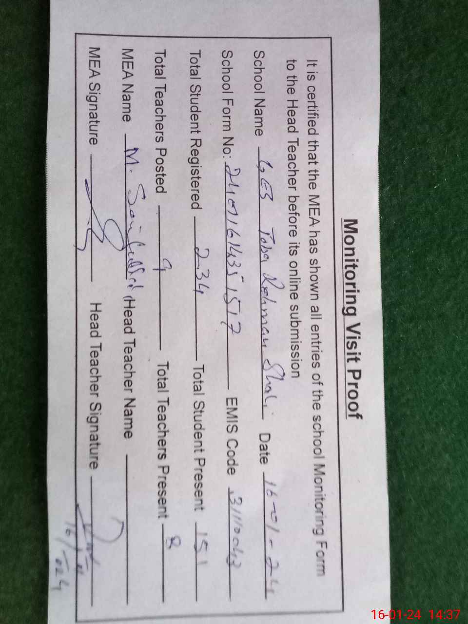 | EMIS Code: 31110043 | Name of School: GES TOBA RAHMAN SHAH | |||