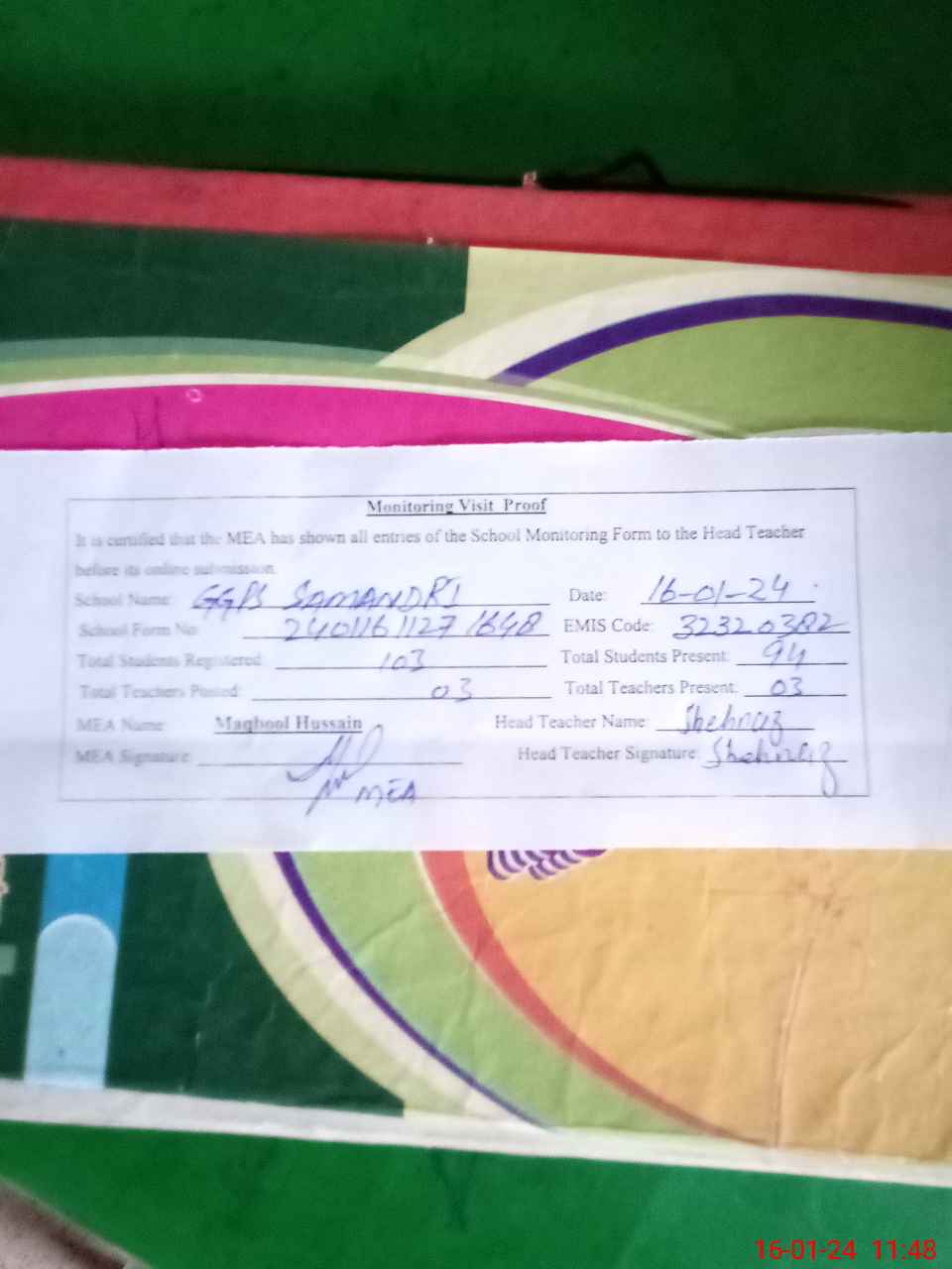 | EMIS Code: 32320382 | Name of School: GGPS SAMANDARI | |||