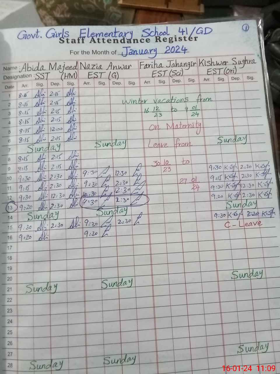| 35**** | Fa**** Ja**** | 1 | 31 | 0 | 0 | 31 | 0 | 0 | 0 | 0 | 0 | Maternity | |