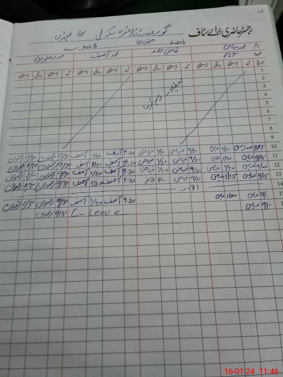 | CNIC | Full Name | Designation | R/C | Absence During Last Calender Month |