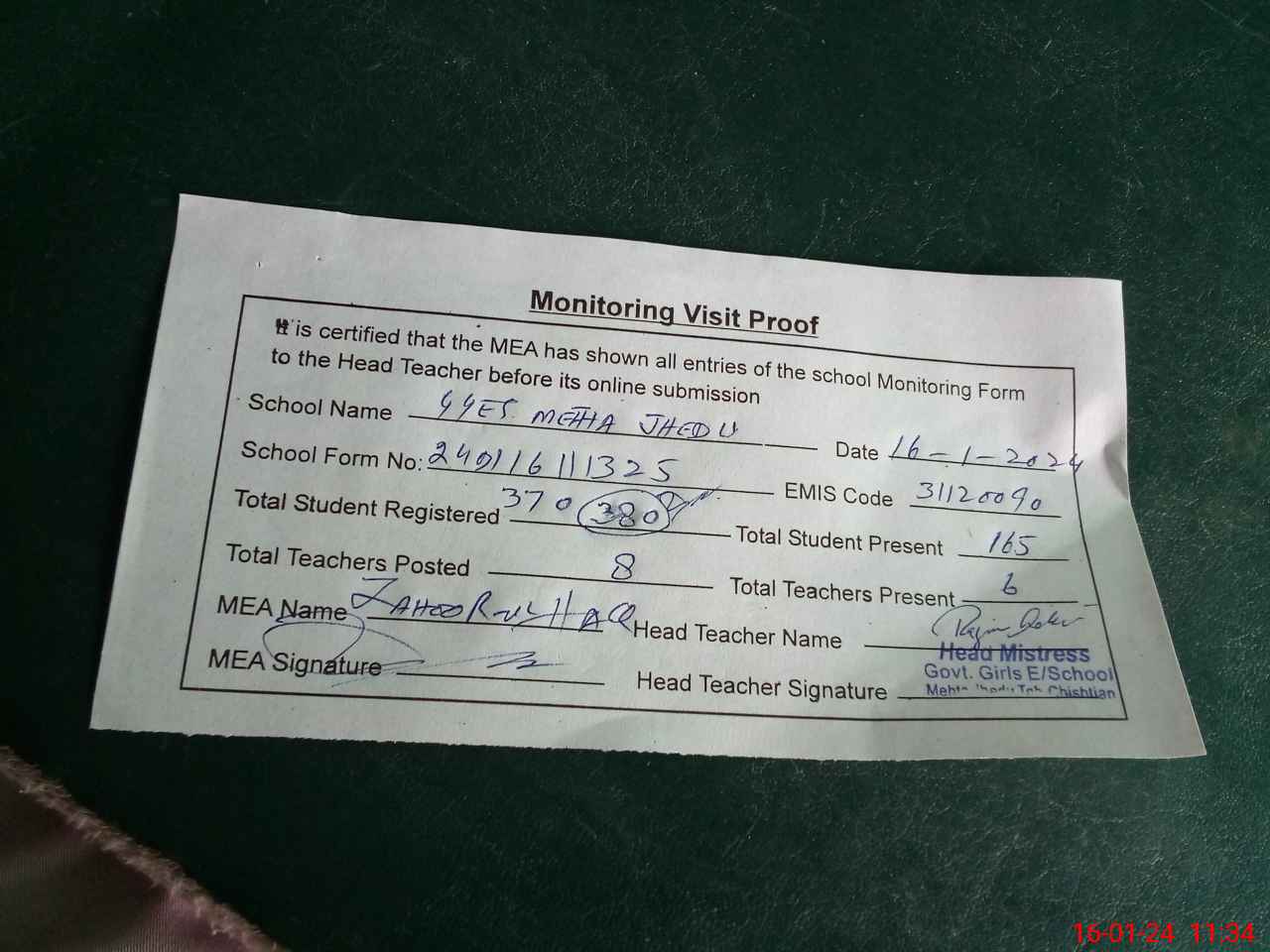 | EMIS Code: 31120090 | Name of School: GGES METHA JHEDU | |||