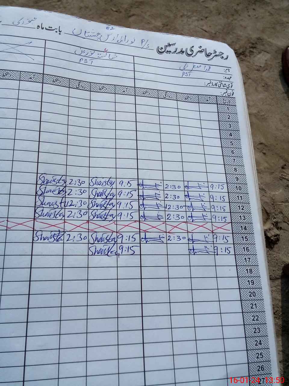 | CNIC | Full Name | Designation | R/C | Absence During Last Calender Month |