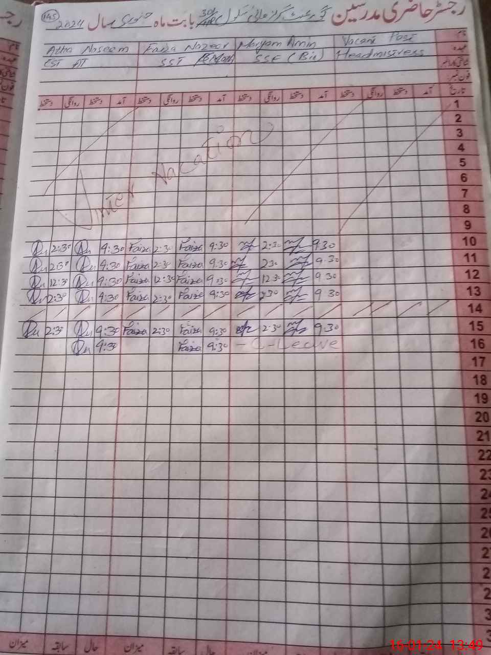 | 31**** | Ma**** Am**** | 2 | 0 | 1 | 0 | 0 | 0 | 0 | 0 | 0 | 0 | Absent (Un-Authorized) | |