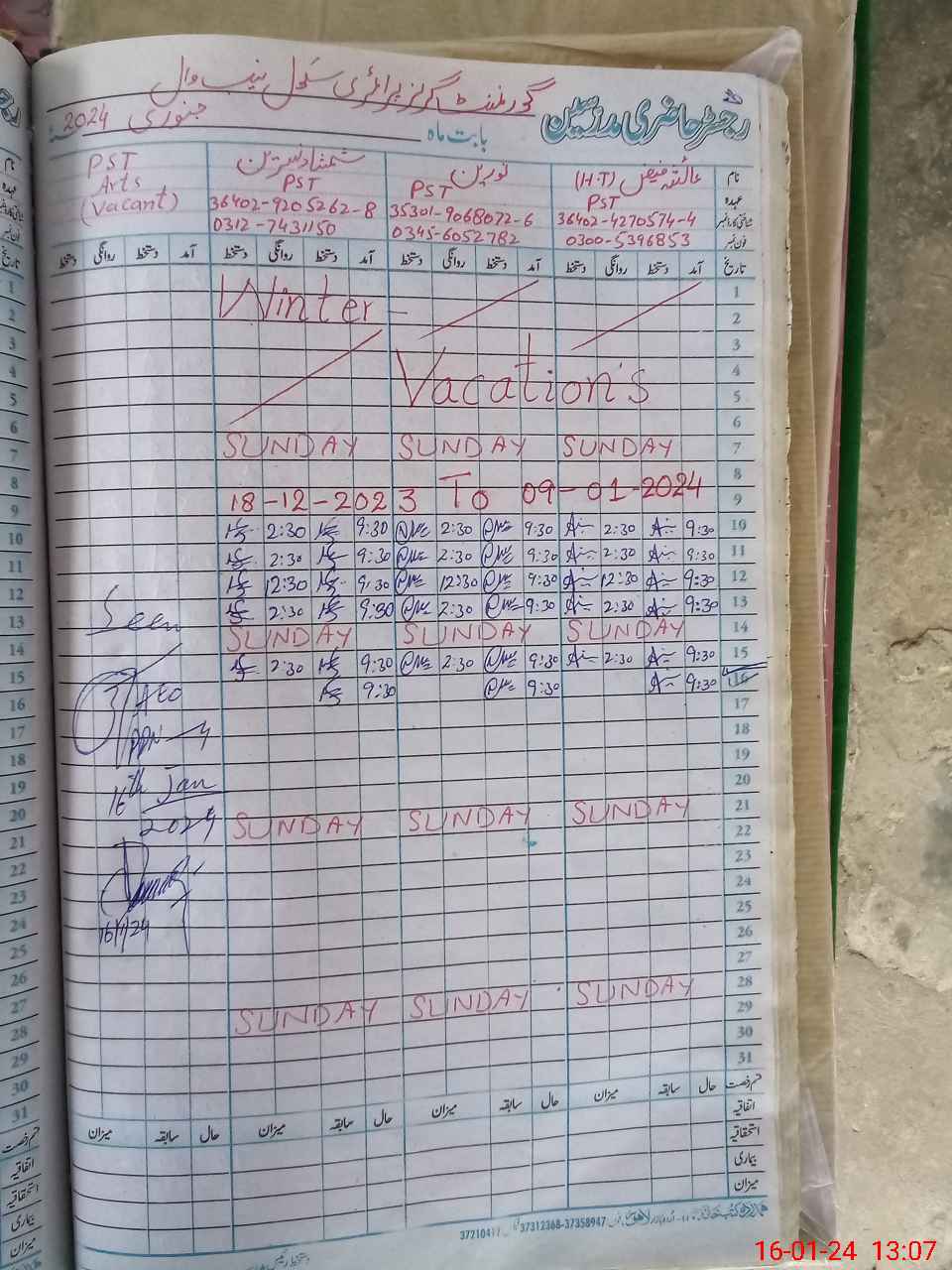 | Name: AY**** FA**** Designation: (School Headmaster's/Headmistress's) PST Phone/Cell Number: 03**** |
