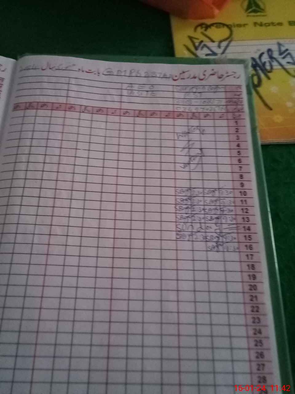 | CNIC | Full Name | Designation | R/C | Absence During Last Calender Month |